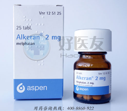 口服Alkeran每日每公斤体重0.15毫克或每平方米体表面积6毫克,共5日,每六周重复疗程,也可使用Alkeran静脉注射治疗。