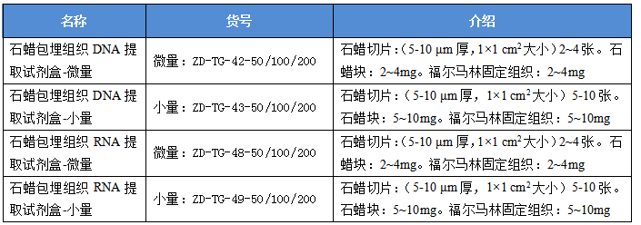 石蜡包埋组织核酸提取试剂盒适用于从石蜡切片、石蜡块、福尔马林固定组织等样品中提取核酸,样本直接提取无需脱蜡,极大方便用户。