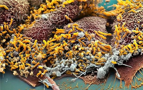 研究人员还发现,约10%感染幽门螺杆菌的胃癌患者会同时感染EB病毒(人类疱疹病毒4型)。在感染这种病毒后,胃细胞中SHP1的量会减少,导致cagA蛋白质的致癌活性变强。这也是科学家首次弄清细菌和病毒“联手”致癌的机制。