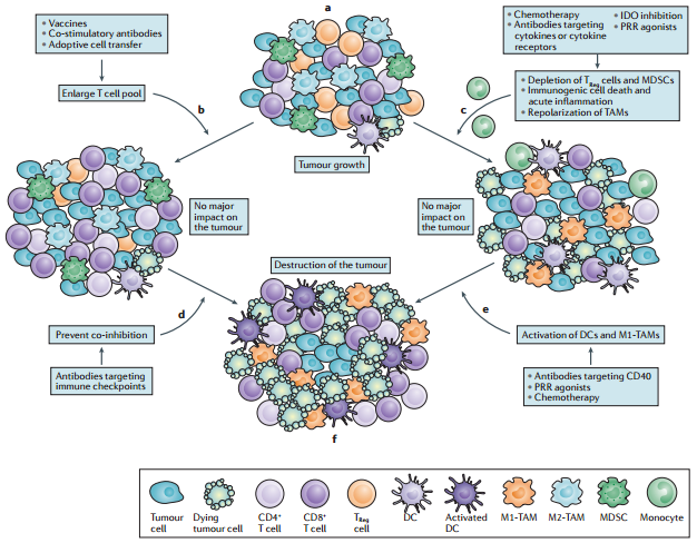 第三, 成功的免疫治疗是靶向肿瘤细胞的免疫抑制策略,这可以通过特定的联合治疗实现,比如联合化疗、检查点抑制剂等。