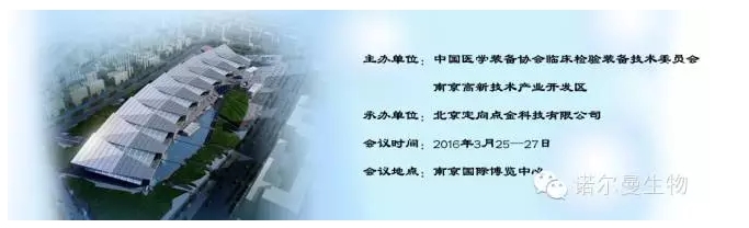 由中国医学装备协会临床检验装备技术专业委员会、南京高新技术产业开发区主办,中国老年医学学会检验分会、解放军医学计量科委会临床检验设备安全与质量管理委员会、解放军医学科委会检验分会、南京生物医药谷协办的“第二届全国临床检验装备技术与应用学术大会”定于 2016 年 3 月 25 日至 27 日在南京国际博览中心召开。热烈邀请全国医学检验技术应用人员、IVD 企业研发生产人员、医学工程院校科研教学人员、IVD 检测和监管人员及相关学科人员参加会议。