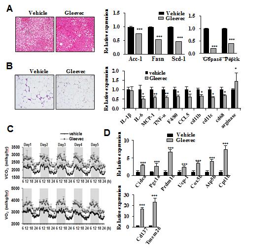 在高脂饮食小鼠中实验发现,格列卫能够改善胰岛素敏感性,且不产生其它靶向PPARγ药物会引发的严重副作用。此外,格列卫还能够降低肝脏中脂肪生成和糖异生相关基因表达,改善脂肪组织中的炎症反应。