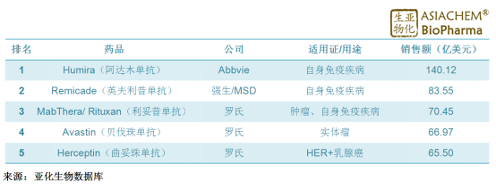 阿达木单抗在全球已四年蝉联“药王”,其中2013-2015年连续三年突破100亿美元。