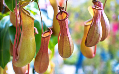 猪笼草是一种神奇的热带食虫植物。猪笼草拥有一个独特的吸取营养的器官——捕虫笼,能分泌蜜汁和消化液,当经不起笼内蜜汁诱惑的昆虫失足掉进捕虫笼后,笼内的消化液可以把昆虫消化吸收。
