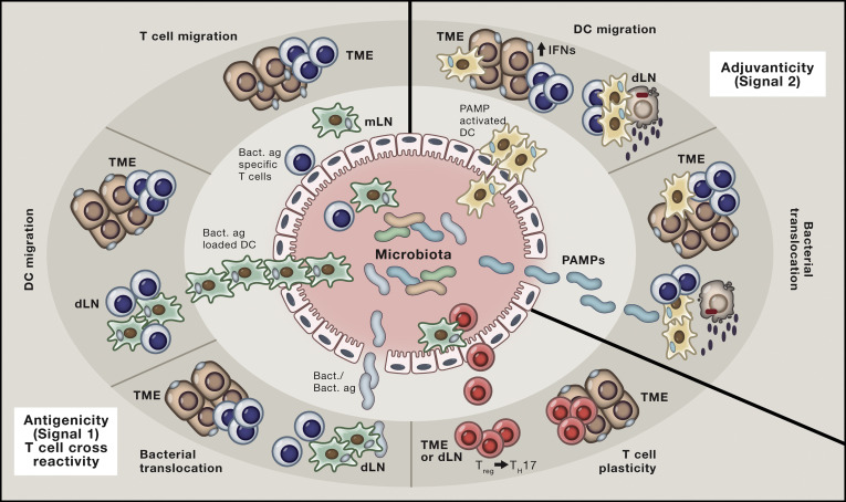 Proposed Mechanisms Accounting for the Microbiome Distant Effects on the Tumor Microenvironment