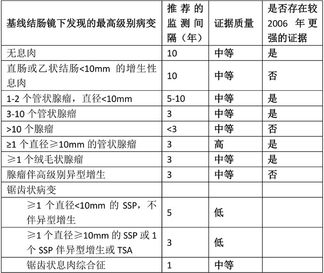 表 1 2012 年对中等风险患者结肠镜监测与筛查间隔的推荐意见
