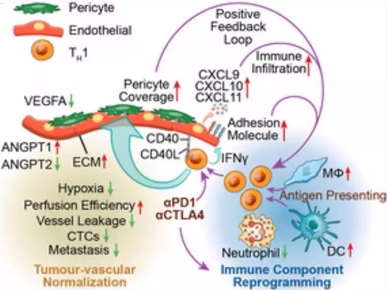 ▲肿瘤血管正常化和免疫激活之间的相互调节(图片来源:《Nature》)